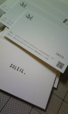 明日は船場御坊朝市ですね~♪いつもがんばるSoleilの為にNちゃんが新しい名刺を作ってくれました\^o^/今回は両面に可愛いSoleilの文字が入っていてとても素敵です☆Nちゃんありがとう~♪明日もがんばります!!!